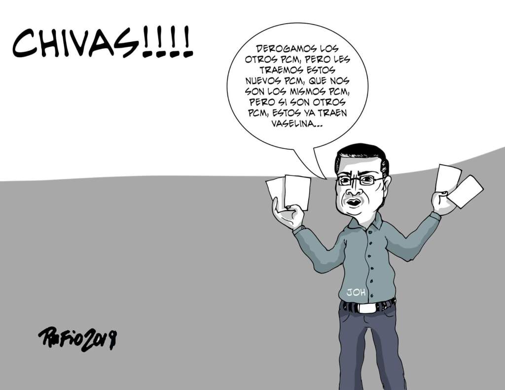 Se desmoronan. Un gobierno nervioso y errático firmó un acuerdo ayer a medianoche con paralelas gremiales desautorizadas y a espaldas de sus bases y con la “mediación” de un Comisionado de Derechos Humanos de bajo perfil que no ha defendido a la población ante la represión militar y la lluvia de bombas lacrimógenas en las últimas semanas. Dan a torcer brazo que decían no iban a torcer y emiten otros PCMs para sustituir a los previos.